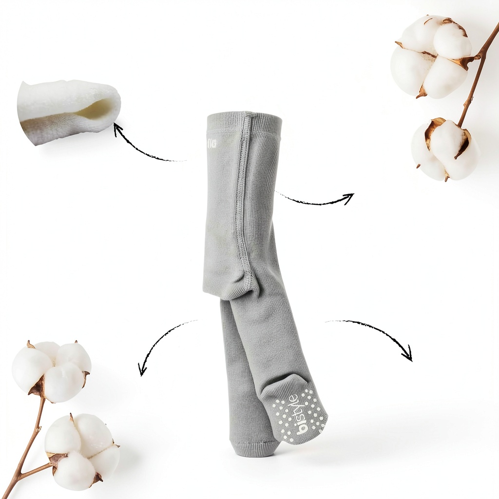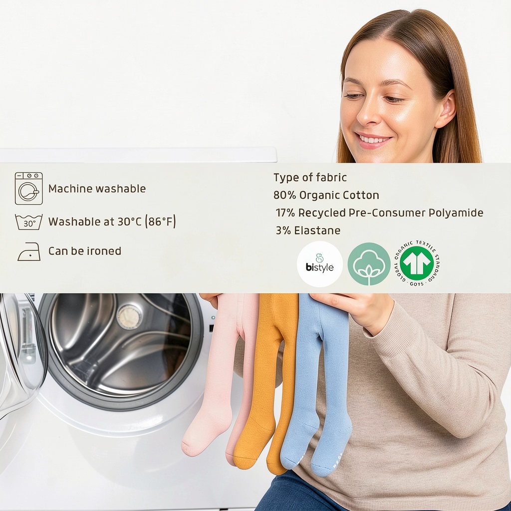 The tights are crafted from premium organic cotton, which is soft, breathable, and hypoallergenic, making them suitable for sensitive skin.