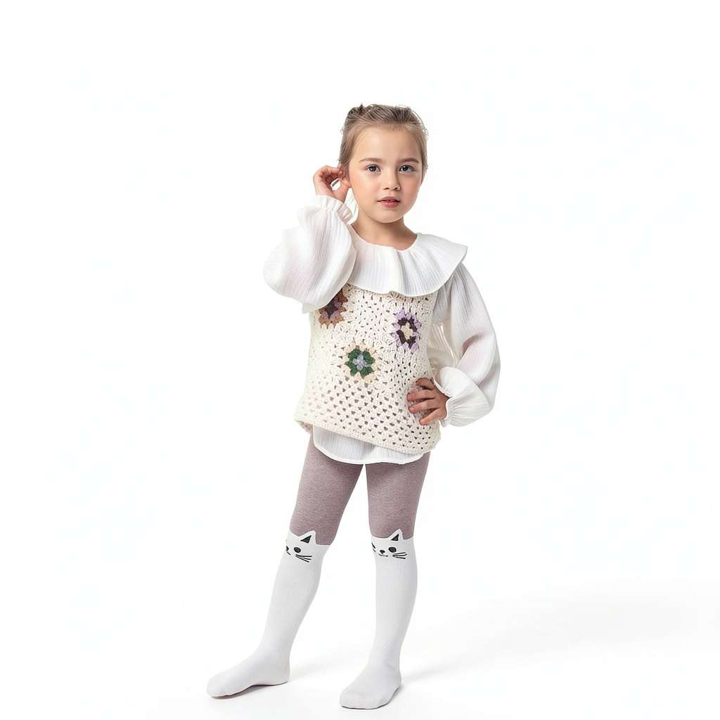 Silkglory girls tights are designed for comfort and style, crafted from a soft blend of 80% cotton, 15% polyester, and 5% spandex to ensure they are gentle on sensitive skin. These tights feature a fitted design that stays close to the body without restricting movement, making them ideal for various activities. Available in sizes ranging from 3-5T to 9-11 years, they come in a versatile grey, black, and white color combination with an adorable cat decoration for added charm. The fabric is thick enough for warmth in cooler weather yet breathable for active play, and the non-slip construction provides safety during outdoor adventures.